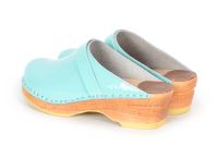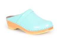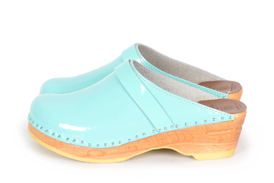 Classic Swedish clog style in mint patent leather. Made on our varnished Original bottoms.