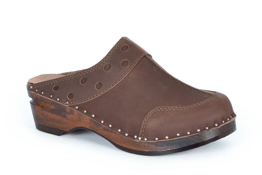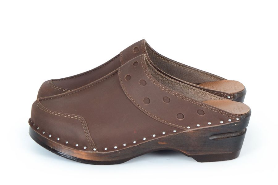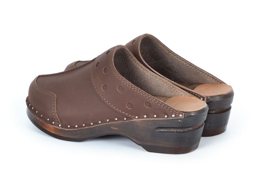 • Brown stained Troentorp Clogs' Original bottoms