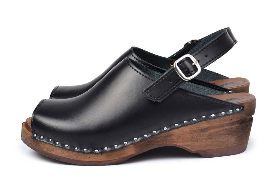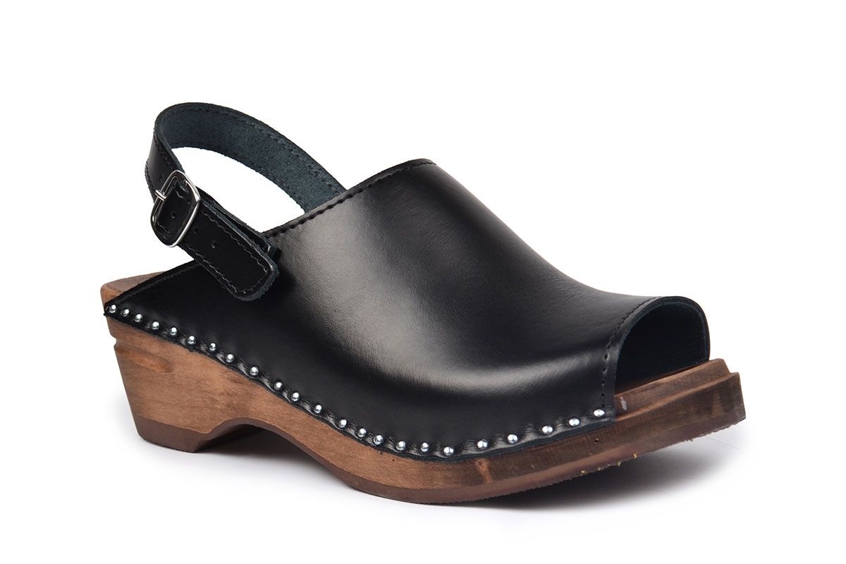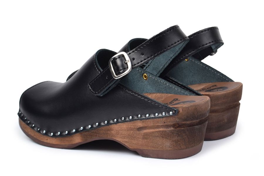 Eva clog sandal has a clean and simple design with an open toe front and an adjustable heel strap. The clogs are made on our brown original base.