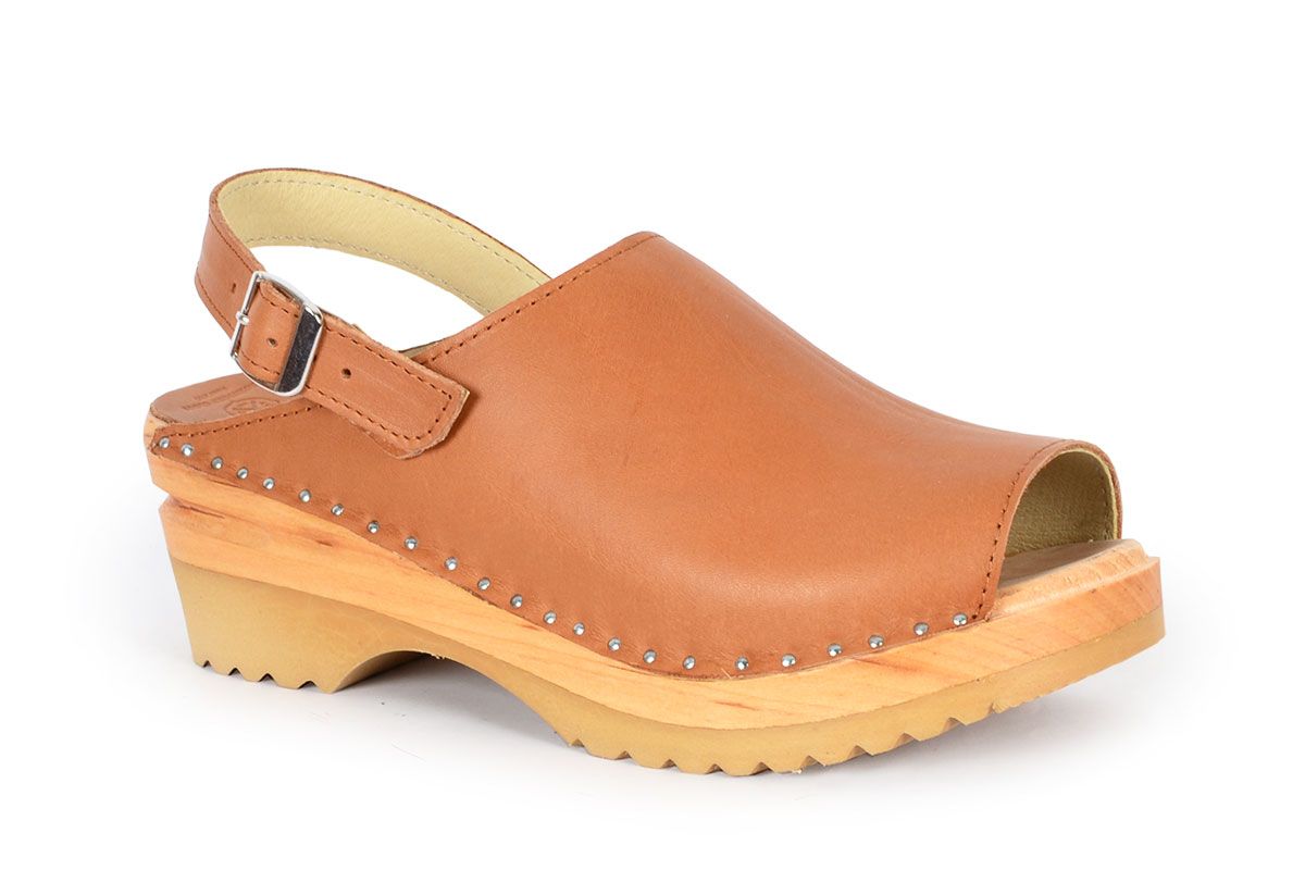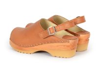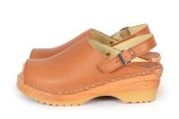 The Eva clog sandal has a clean and simple design with an open toe front and an adjustable heel strap. The clogs are made vegetable tanned leather and on our natural Ideal base. This vegetable tanned leather will age with a beautiful rich patina, giving a distinctive look to every pair of clogs. A protective coating has been applied to make it less sensitive, but as with all vegetable tanned leathers, it is best to to try and avoid exposure to water and other liquids.