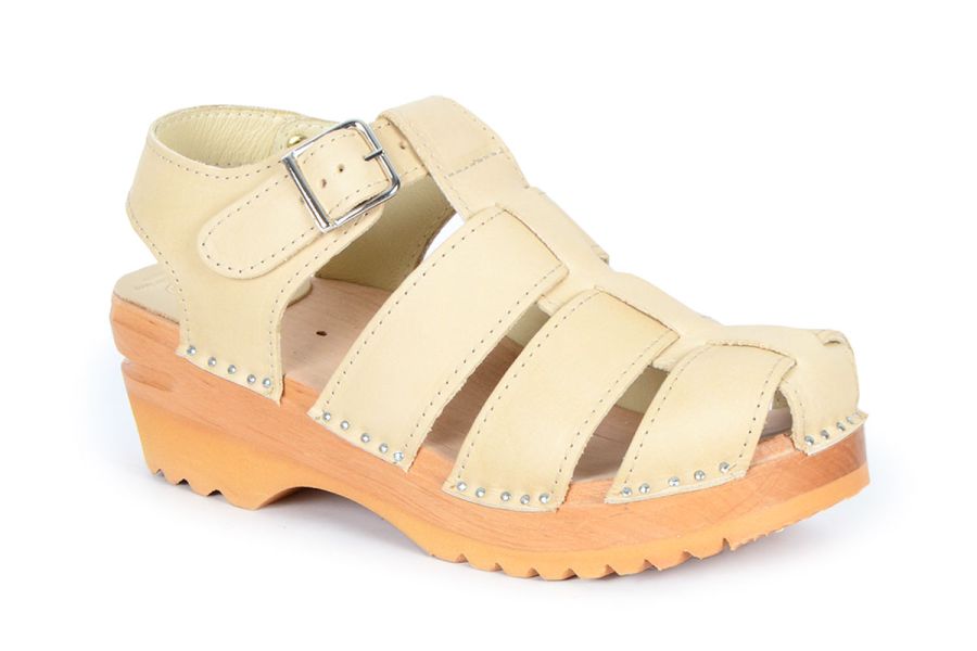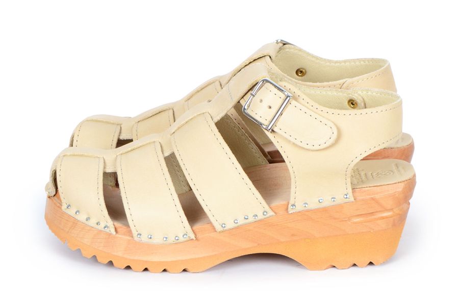 Clog Sandal with airy design in vegetable tanned leather with soft chrome free lining leather. The sandals are made on our Ideal soles.