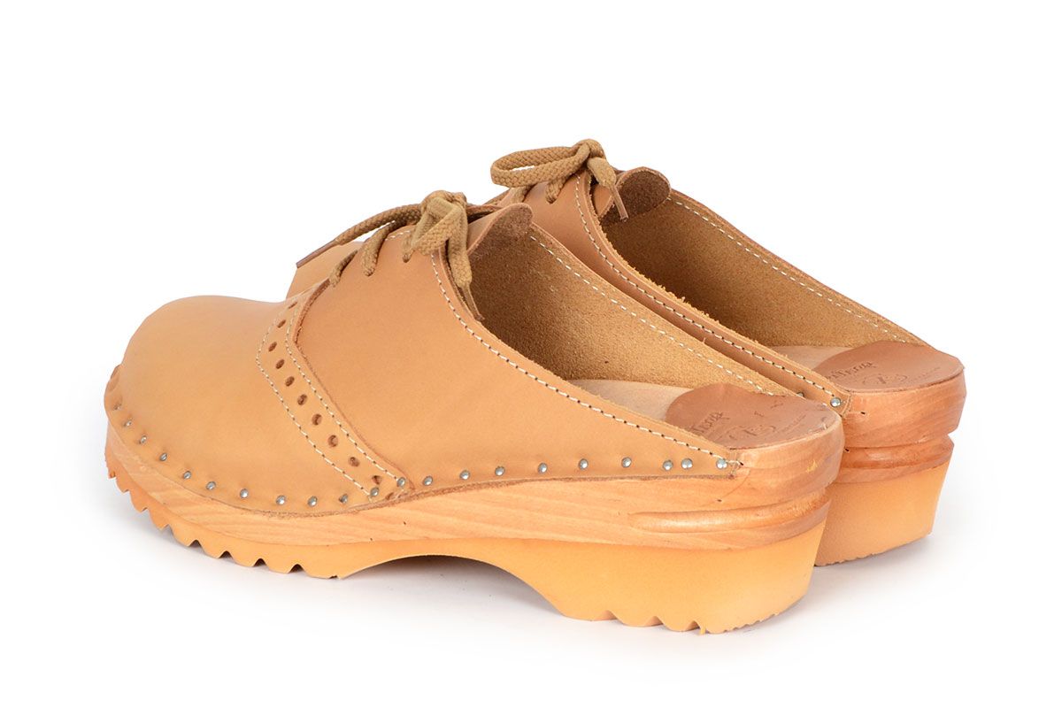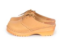 Klein comes in light tan leather with laced front. A version of this clog was first released under the Bastad name in the 1970's. This brogue-style clog is truly unique. The laced upper allows for an optimal fit while the "brogued" cap-toe offers style and durability.