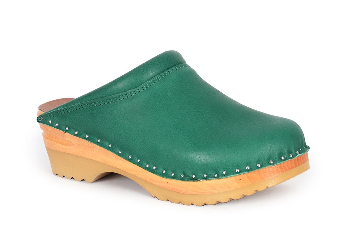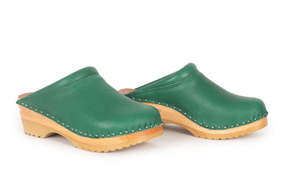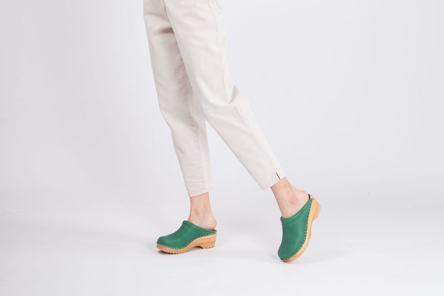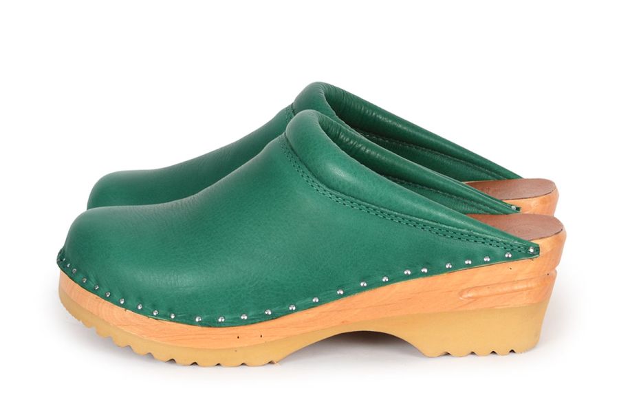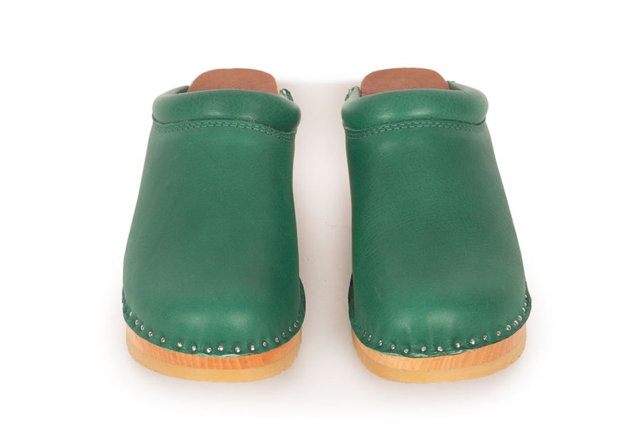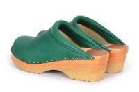 Rembrandt has a clean design with soft padding over the instep for comfort and extra stability. Here in soft green vegetable tanned leather on our varnished Ideal wooden clog bottom. This natural leather will age with a beautiful rich patina, giving a distinctive look to every pair of clogs. A protective coating has been applied to make it less sensitive, but as with all vegetable tanned leathers, it is best to to try and avoid exposure to water and other liquids.