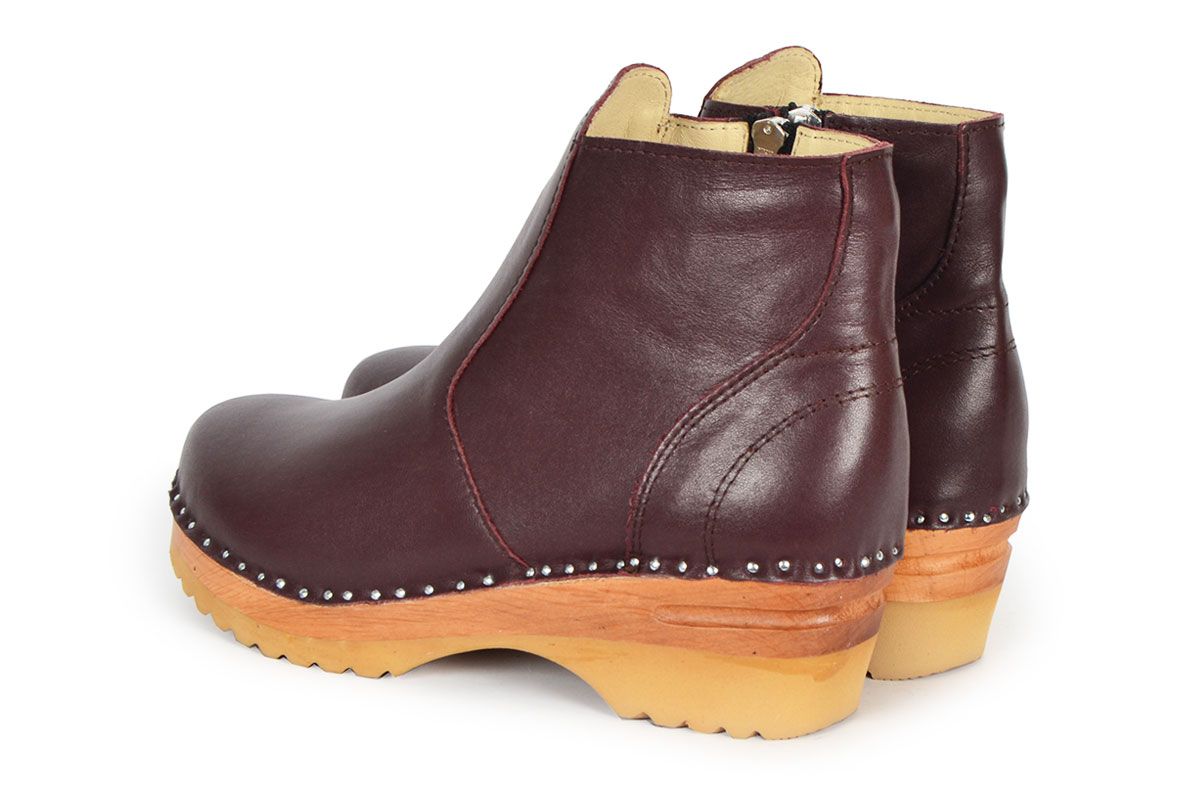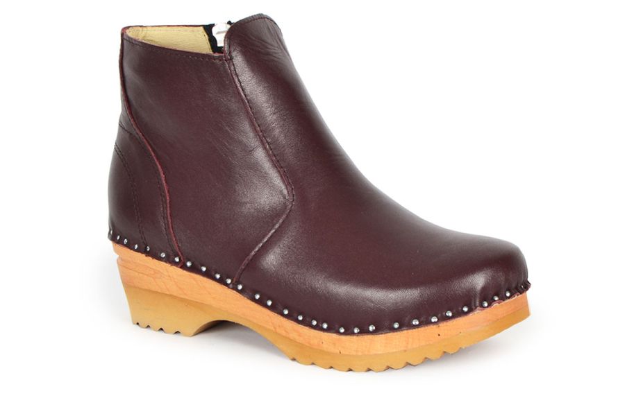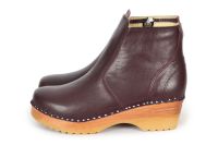 Turner clog boot in wine leather. This Troentorp clog boot comes with a zipper on the inside and soft leather lining. Nailed onto our varnished Ideal bottoms.