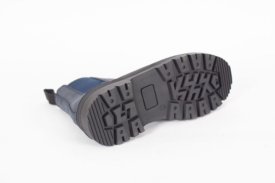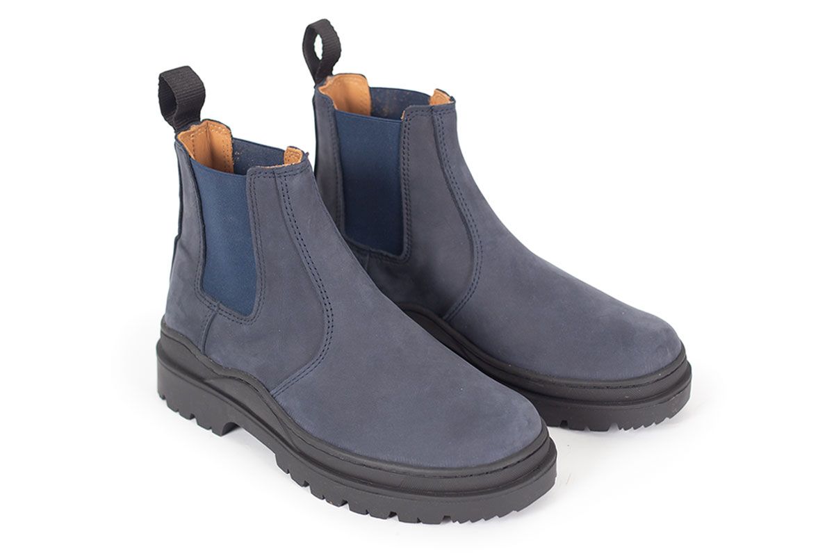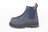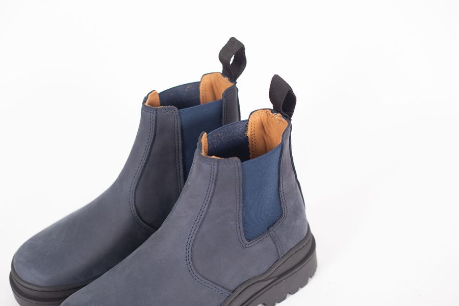 Chelsea-style boot featuring quality elastic for slip-on convenience. Made in navy nubuck leather from Portugal and a leather wrapped Ortholite insole for all-day comfort. To increase durability, the leather uppers are cemented and stitched to a lugged rubber outsole.