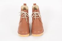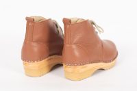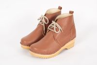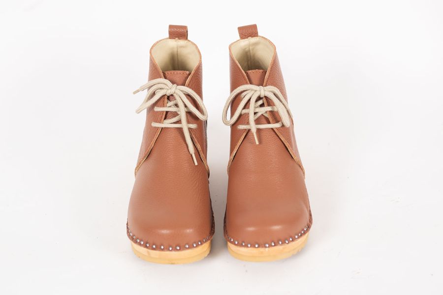 Morris clog boot with laces in a brown pebbled leather and on our varnished Ideal bottoms.